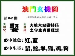 041期澳门关门联:一连二在玄机到,鼠猪蛇鸡是特码。解 [机] [4728]